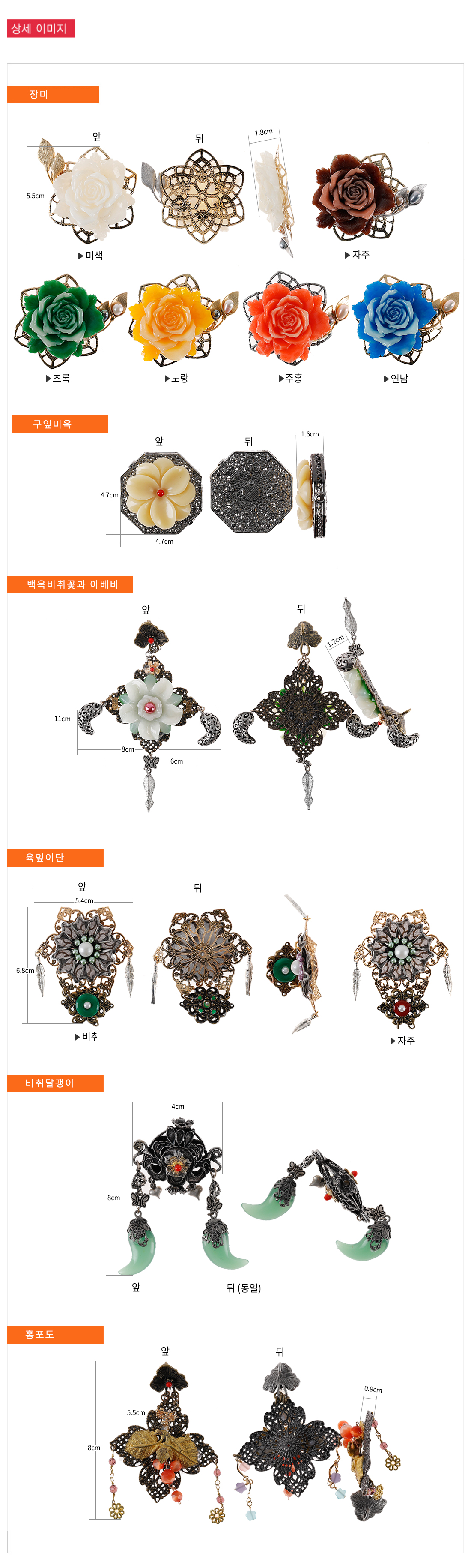 장미구잎미옥육잎이단 비취육잎이단 자주비취달랭이홍포도7종류노리개부속